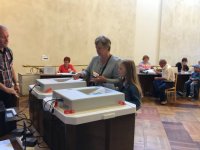 Избирательные участки в Общественно-культурном центре по обыкновению одни из самых многолюдных. Жители Центрального района появились на них сразу после открытия. Горожане получают три бюллетеня, которые после заполнения необходимо опустить в автоматизированные комплексы обработки - КОИБы. Глава Рыбинска Денис Добряков спросил, не возникает ли у людей старшего возраста проблем при обращении с техникой.