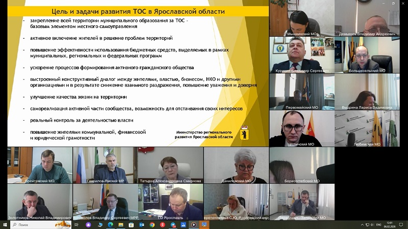 - О поддержке территориального общественного самоуправления (ТОС) в 2026 году. С информацией по данному направлению выступил заместитель министра регионального развития Ярославской области Богомолов Владимир Сергеевич.